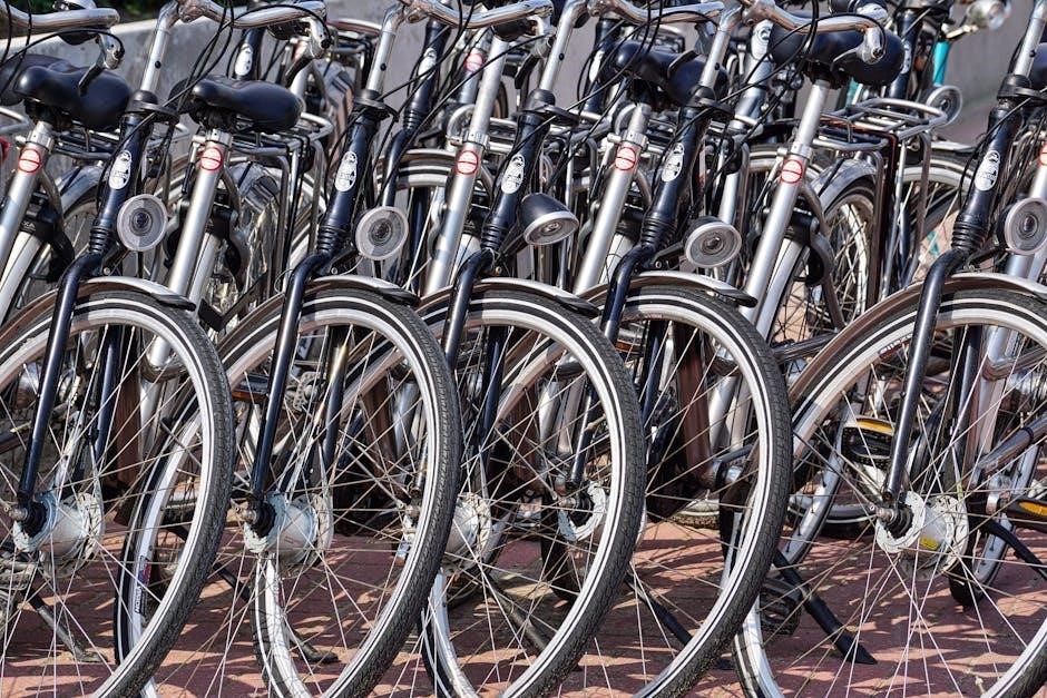 Commuter and hybrid bikes often use tire widths between 28mm and 42mm, balancing comfort, durability, and efficiency. Wider tires (35mm+) provide better cushioning and traction on uneven surfaces, while narrower options (28-32mm) prioritize speed. For urban commuting, wider tires are preferred for their reliability and puncture resistance. Riders can opt for semi-slick or knobby patterns depending on terrain. Proper tire pressure is key to optimizing performance. This versatility makes hybrid and commuter bikes ideal for daily use, adapting to both paved roads and light trails with ease and practicality.