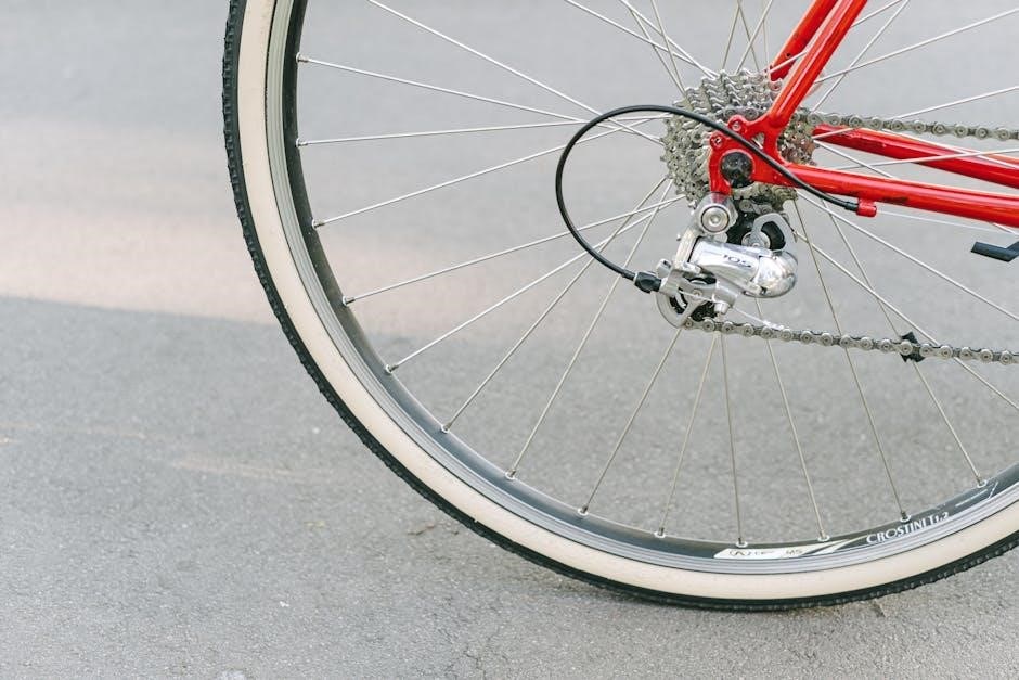 Tire width is measured across the tread from one sidewall to the other, typically in millimeters or inches. This measurement determines the tire’s compatibility with rims and frames, ensuring proper fitment. Accurate measurements are crucial for performance, as they affect handling, comfort, and speed. Always refer to the sidewall for specifications, as width can vary slightly when inflated. Proper measurement ensures optimal tire function and safety, making it a key factor in selecting the right tires for your bike.